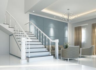 The exterior of a modern, high-end house featuring a clean white theme, with sleek lines and premium finishes that exude luxury and sophistication.